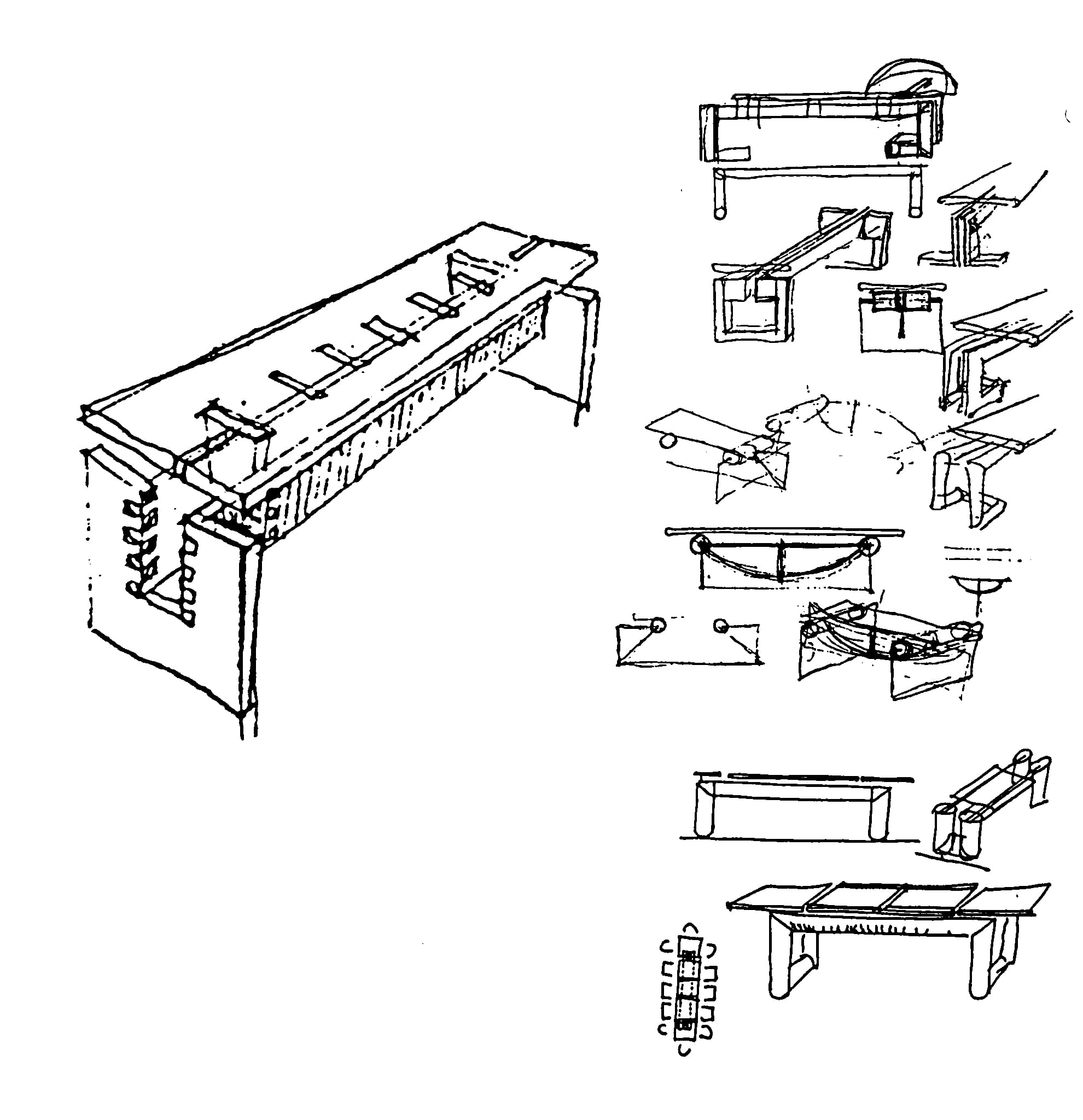 It is in this context that his interest in design emerged. The transition occurred naturally, without rupture: “Yes,” he says, “I am interested in the chair as I am in the city. What attracts me is the intensity of things, not their size or their theme.” Whether architecture or design, Mario Botta conceives with the same gesture. The sketches for the Terzo table are a striking example: they reveal both the frontal module of the Gotthard Bank and the inverted T motif, an architectural symbol and formal signature.